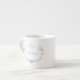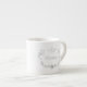 Xícara espresso branca elegante, com gráficos de tom prateado florescem e área de texto coroa com texto personalizado. Personalize o texto para esta adorável adição à sua mesa de jantar.