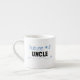 Caixas de manutenção, azulejos, ornamentos, notebooks, canecas, ímanes, cartões, botões, capuzes, chaveiros e outros futuros itens de presentes e roupa de tio com texto azul e preto e design de estrela.