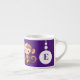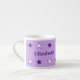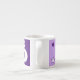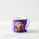 Caneca/xícara de criança / para crianças. "Espresso tamanho" caneca - tamanho perfeito para uma criança pequena. Nesta xícara de bebendo há um macaco fofo, com estrelas. Adicione um nome e inicial. Roxo e branco.