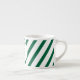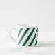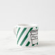 Xícara de café espresso bonitinha com listras verdes e brancas e imagem personalizada da xícara de café.