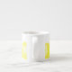 Uma elegante xícara de espresso floral personalizada para a noiva ou para dar como presentes de damas de ponte decorados com tulipas amarelas moles pintadas com aquarela acentuadas com pontos festivos de aspersão de aquarela e texto de cinza. Uma xícara que a noiva pode usar para apreciar um café enquanto a escrevendo, agradecemos notas e juntando planos no seu diário de noivas. Você pode personalizar o texto para ajustado das suas necessidades.
