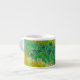 Espresso Cup, que apresenta o campo de pintura a óleo de Vincent van Gogh com Irises Próximo a Arles (1888). Lindos iretos azuis decoram os campos de ouro em Arles, França. Um presente maravilhoso para amantes do impressionismo Postado e colecionadores de arte holandeses!