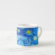 Espresso Cup featuring Vincent van Gogh’s oil painting The Starry Night (1889). Inspired by his stay at an asylum, the art depicts a village underneath a night sky of blue and yellow moon and stars. A great gift for fans of Post-Impressionism and Dutch art.
