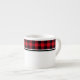 Esta caneca de estilo espresso é mostrada com uma adorável design de impressão de xadrez de de de búfalos preto e vermelho. Personalize este item ou comprar como está. Imagem do stock freepik.com