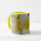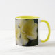 Meu trabalho de arte digital original com minha fotografia original de flores amarelas, em um jardim, está neste bonito copo de caneca floral. A imagem foi processada com efeito de fantasia de aquarela para uma aparência ilustrada e caprichosa. A dentro da xícara e da alça são um tom amarelo para complementar a trabalho de arte. Estas são canecas de 11 onças, do tamanho perfeito para o café ou chá da sua casa - ou até chocolate quente! Ele faria um presente de excelente e você poderia colocar pacotes de café, bolsas de chá ou dentro de chocolate quente. Uma outra ideia de presente é colocar uma pequena planta nela para torná-la mais especial para o seu amado. Também seria um belo presente de Dia de as mães.