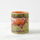 Esta caneca bonito apresenta minha fotografia original de uma bela e grande vaca do Texas Longhorn, parada em uma pastagem de fazenda, processada em uma técnica ilustrada e pareada para um estilo artístico. O cabo e dentro da xícara são um tom laranja para complementar o trabalho de arte. Estas são canecas de 11 onças, do tamanho perfeito para o café ou chá da sua casa - ou até chocolate quente! Ele faria um presente de excelente e você poderia colocar pacotes de café, bolsas de chá ou dentro de chocolate quente. Uma outra ideia de presente é colocar uma pequena planta nela para torná-la mais especial para o seu amado.