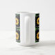 Esta caneca bonito apresenta um padrão antigo de quadrados processados e criados digitalmente por mim em um padrão retrorreflector de quadrados angustiados com girassóis ilustrados em cada quadrado.