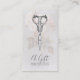 Um design de cartão de visita bonito, elegante que caracterizam um rosa e um par de tesouras/tesouras em um fundo de linho simulado do impressão com seu nome na caligrafia script. Um cartão do vale a dar para fora a seus clientes para o Natal, o ano novo, e a época natalícia geral do inverno. Aperfeiçoe para hairstylists, cabeleireiros, armários do cabelo, cosmetologia, cosmetologists, salões de beleza, termas e mais!