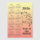 Year of the Horse 2026 Calendar Magnetic Card