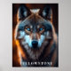 Poster é mostrado com uma impressão de arte fotográfica de um lobo Yellowstone. Personalize este item ou comprar como está.