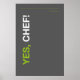 Add some humor to your kitchen! “YES, CHEF!” poster in modern typography. Perfect for home decor, gifts, or cooking enthusiasts. Available in multiple color backgrounds.