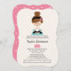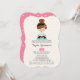 Convites de chá de panela de ioga com iogi de morena doce e kawaii exalando um fôlego profundo enquanto se sentava bonito num tapete azul de ioga no coração, rosa e tampa branca, leggings de formiga de ioga preta e faixa branca de bolinhas e flor rosa. Uma flor de lótus cor-de-rosa num fundo de natas e bolinhas brancas na frente e um padrão cardíaco de polca rosa e branco no verso. Isso faz um convite giro para uma festa de chá de panela temática de yoga. Trabalho de arte © Chrissy H. Studios, LLC. Todos os direitos reservados.