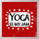 "Yoga Is My Jam" é um design de texto divertido com uma forma de sotaque branca cercado por pontos brancos texturizados.