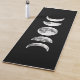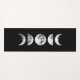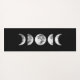 Um belo ioga ou tapete de exercício que apresenta fases da lua sobre um fundo negro.