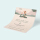 Um panfleto com uma silhueta de uma mulher na pose de pombo-rei, uma paisagem ao fundo e informação personalizável, tudo em tons pastéis. Perfeito para atividades como instrutor ou professor de ioga, meditação, centro de relaxamento ou de bem-estar, terapeuta, etc.
