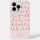 Ilustração colorida de pessoas em diferentes poses de ioga sobre um fundo de rosa claro. Capas de iphone de ioga fofinha, com nome personalizado e inicial.