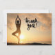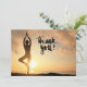 Estou muito grato por suas aulas de yoga. Eles foram realmente uma experiência transformadora para mim. Sou mudado para sempre pelo poder do yoga e estou muito grato por tê-lo como meu professor. Ajudou-me a encontrar paz e equilíbrio na minha vida. Eu sou verdadeiramente abençoado. Com desejos mais calorosos, enviar um cartões de agradecimentos de ioga é a maneira perfeita de mostrar seu apreço por alguém que fez algo especial para você. A bela imagem de uma mulher praticando yoga no pôr do sol é a maneira perfeita de dizer obrigado.