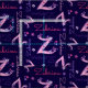 Monograma gráfico decorativo moderno, letra inicial Z e tecido com formato de nome. Bonito letra Z de arte rabiscada convertida em um gráfico com seu nome. Mão desenhada design embelezada com flores e corações. Personalize com a sua própria escolha de nome (por favor, note que nem todos os nomes irão ajustado devido à natureza da fonte) lê atualmente Zabrina, outras extensões de nome estão disponíveis, se você precisar de assistência, entre em contato comigo, fico feliz em postar uma pelo seu nome. Tecido em tons de rosa e roxo sobre um fundo azul escuro marinho que pode ser alterado se necessário. Uma forma excelente de personalizar seus projetos de costura e colagem. Ideal para uma costura personalizada de meninas. Arte original e design por Sarah Trett para www.mylittleeden.com