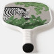 A solitary zebra walking amongst the monstera, ivy and bird of paradise leaves.