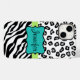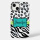 As listras de zebra e as peles de chita em preto e branco e o verde limão combinam-se para a design gráfica do vosso gabinete celular que pode ser personalizado com o vosso nome. Esta é uma das tendências mais quentes de arte e design, e é extremamente popular de moda a decoração doméstica. Esta sofisticada coleção de cinza preto e branco branco, e verdes limões e zebra branca e impressão de chita é uma das várias combinações de cores disponíveis. Um emblema azul-azul-turquesa cria uma área de personalização. Isso é totalmente personalizável para personalizar e incluir seu nome, iniciais de monograma, nome comercial ou outras palavras para transmitir sua mensagem. Vai à loucura com estas designs de pele selvagem!