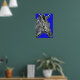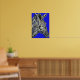 Reprodução de uma pintura original de Georgia Pistolis. É reproduzida digitalmente com fundo azul. A imagem é feita em três outras cores e vai bem como um agrupamento.
