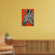 Reprodução de uma pintura original de Georgia Pistolis. É reproduzida digitalmente com fundo vermelho. A imagem é feita em três outras cores e vai bem como um agrupamento.