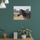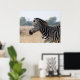 Poster é mostrado com uma impressão de foto de uma bela zebra. Personalize este item ou comprar como está. Imagem do stock