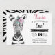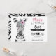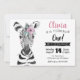 Este adorável convite para o primeiro aniversario WILD ONE apresenta uma cor d'água, um animal zebra pintado à mão com flor rosa. Personalize com seu texto para comemorar seu Wild One.