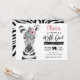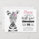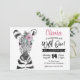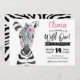 Este adorável convite para o primeiro aniversario WILD ONE apresenta uma cor d'água, um animal zebra pintado à mão com flor rosa. Personalize com seu texto para comemorar seu Wild One.