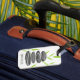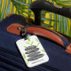 Zen pebble stacking stacking e o bambu verde deixa as etiquetas personalizadas de viagem design. Elegante impressão de arte para a aula de meditação, salão de beleza spa, centro de espiritualidade, massagista, tema de casamento, festa relaxante da natureza, budismo, ioga, professor holístico, treinador de vida, atenção, negócios de saúde mental, compro, companhia etc. As rochas empilhadas balançam umas sobre as outras. Imagem de serenidade. Adicione seu próprio nome personalizado, letras iniciais monográficas, aspas inspiradoras, discurso divertido, citação como Namaste etc. Acessório de etiqueta clássica para bolsas e malas.