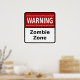 Aviso - Zona Zombie - poster de estilo de sinal de aviso vermelho, branco e preto.